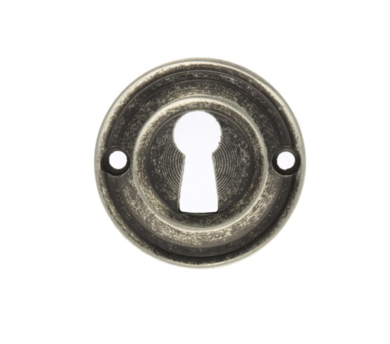 Atlantic Old English Solid Brass Standard Profile Round Escutcheon, Distressed Silver – OERKEDS (sold in pairs)