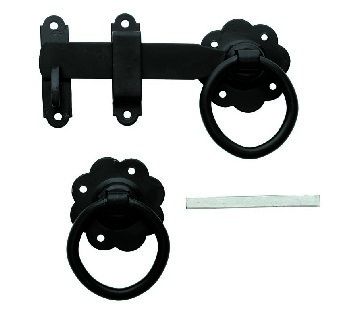 Antique style ring gate latch, for opening and closing gates. With its substantial twisted ring design handle this traditional latch gives an air of elegant olde world charm.
