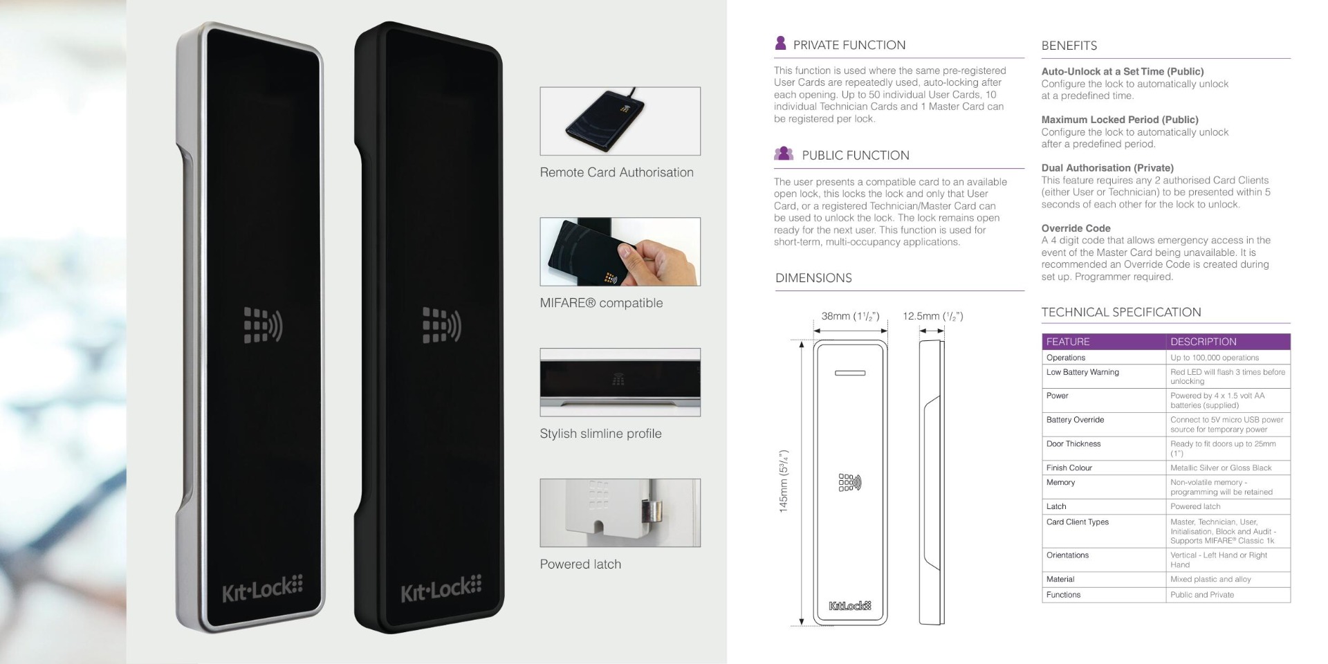 - Clients – Smart Cards: Master, Technician, User, Initialisation, Block and Audit – Supports MIFARE® Classic 1k