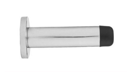 slimline and elegant rubber buffer tipped door stop on rose. The base rose unscrews allowing it to be mounted to the wall or skirting board. The main body is then screwed back on for a neat concealed fit. Available in 2 sizes. Fixing screw supplied.