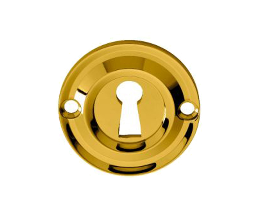 A round uncovered heavier keyhole escutcheon with a classical period appearance. A prominent rounded ridge encompassing the keyhole lends a distinctive style to this escutcheon and elevates it from the ordinary flat plate versions