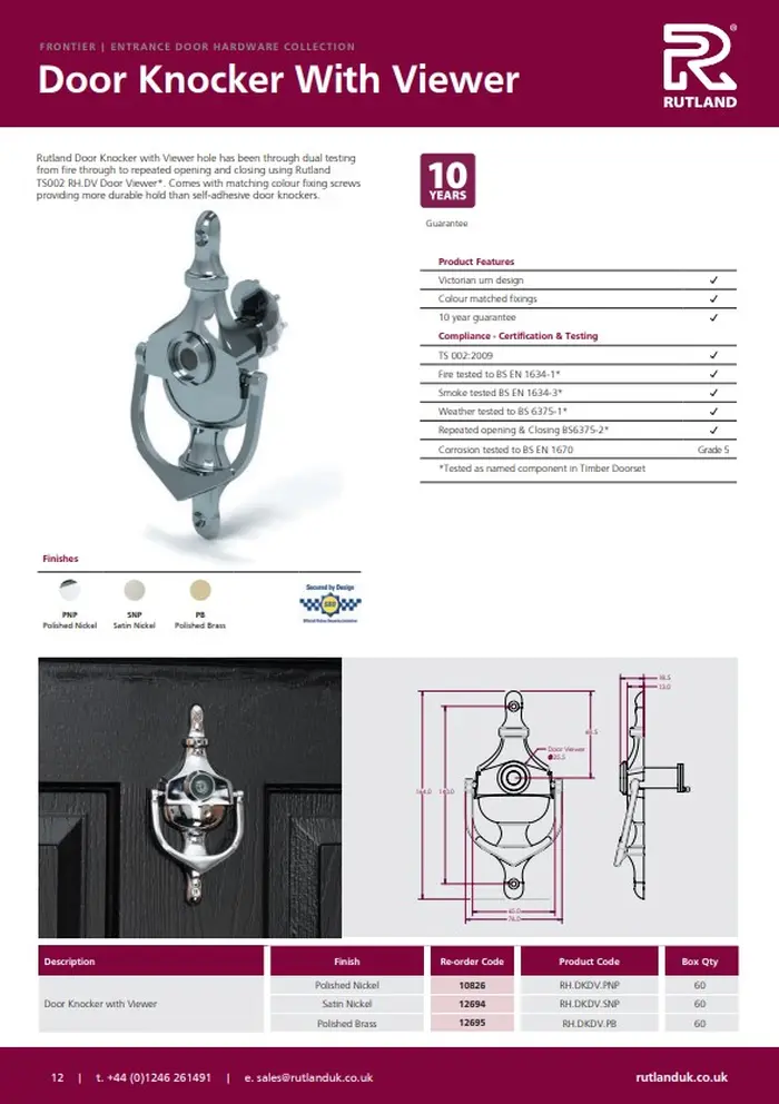 Door Knocker and Viewer Set, Urn Style (Includes Intumescent)