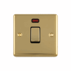 Enhance Decorative 20Amp Switch With Neon Indicator – Polished Brass, Black Trim