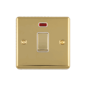 Enhance Decorative 20Amp Switch With Neon Indicator – Polished Brass, White Trim