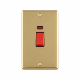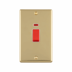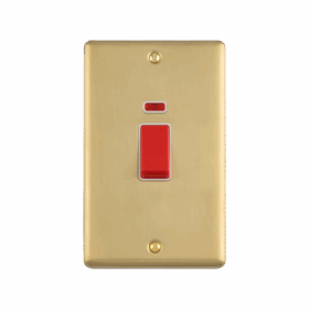 Enhance Decorative 2 Gang 45Amp DP Switch With Neon Indicator Vertical Plate. Available in SSS, PSS, Antique Brass, Black Nickel & Matt Black