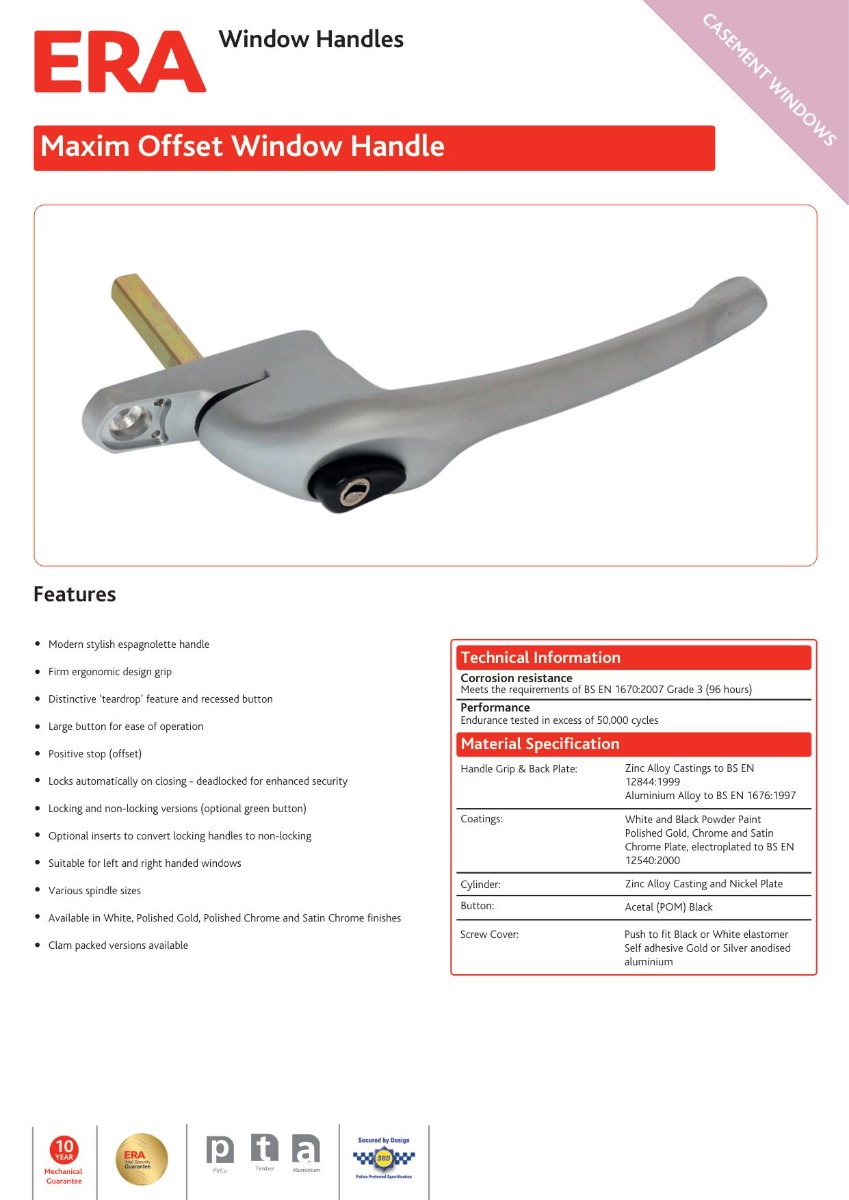 ERA Maxim Offset Locking Window Handle Right Hand 40mm Spindle Polished Chrome