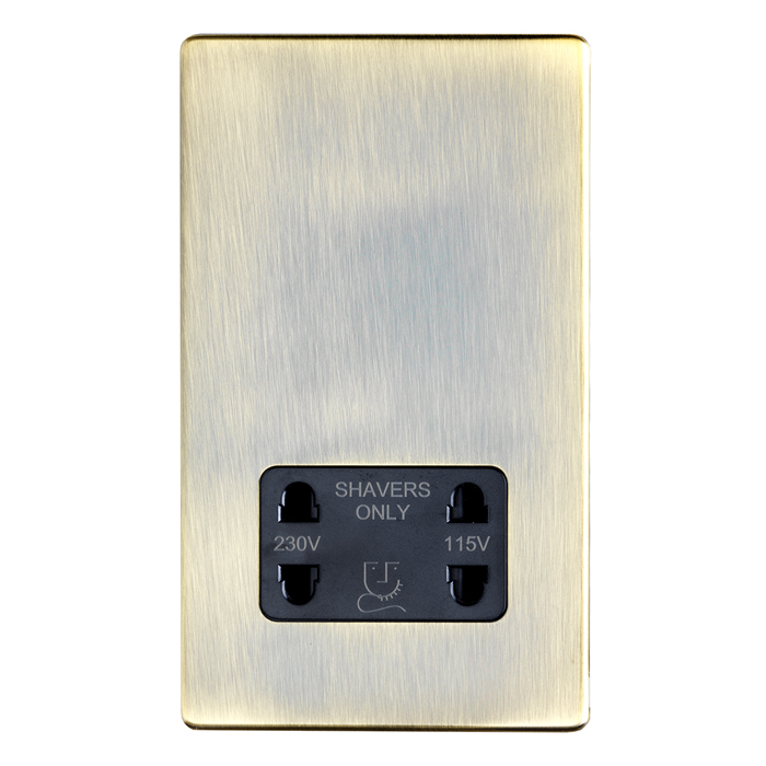 Eurolite Abshsb 2 Gang Shaver Socket 230/115V Flat Concealed Antique Plate Black Interior
