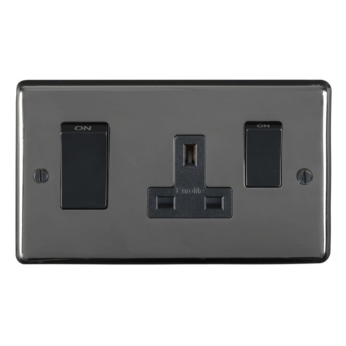 Eurolite Bn45Aswasb 45Amp Dp Cooker Switch With 13Amp Socket Round Edge Black Nickel Plate Black Rockers