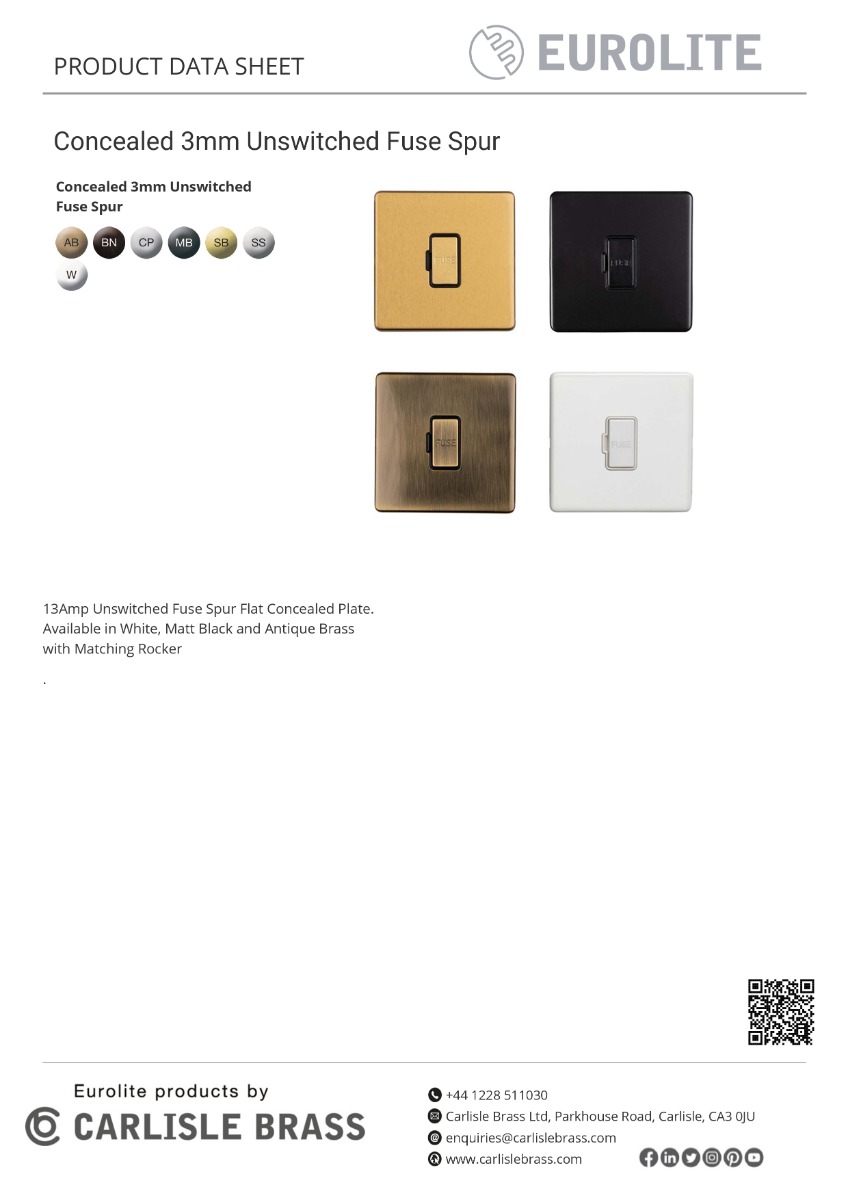 Eurolite Concealed 3mm 13Amp Unswitched Fuse Spur – Black Nickel Elevate your electrical fittings with the Eurolite Concealed 3mm 13Amp Unswitched Fuse Spur in sophisticated Black Nickel. This discreet yet stylish accessory is perfect for providing a clean, modern look to your interiors. Designed for powering fixed appliances or extending existing circuits, it offers reliability and versatility. The concealed 3mm profile seamlessly blends into your decor, while the black nickel finish adds a touch of elegance. With its durable construction, this unswitched fuse spur ensures safe and efficient electrical connectivity. Upgrade your space with this Black Nickel fuse spur for a sleek and contemporary finish that complements any room.