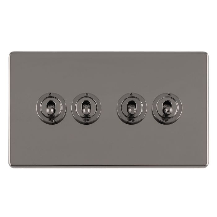 Eurolite Concealed 3mm 4 Gang 10Amp 2Way Toggle Switch Black Nickel Plate – Black Nickel