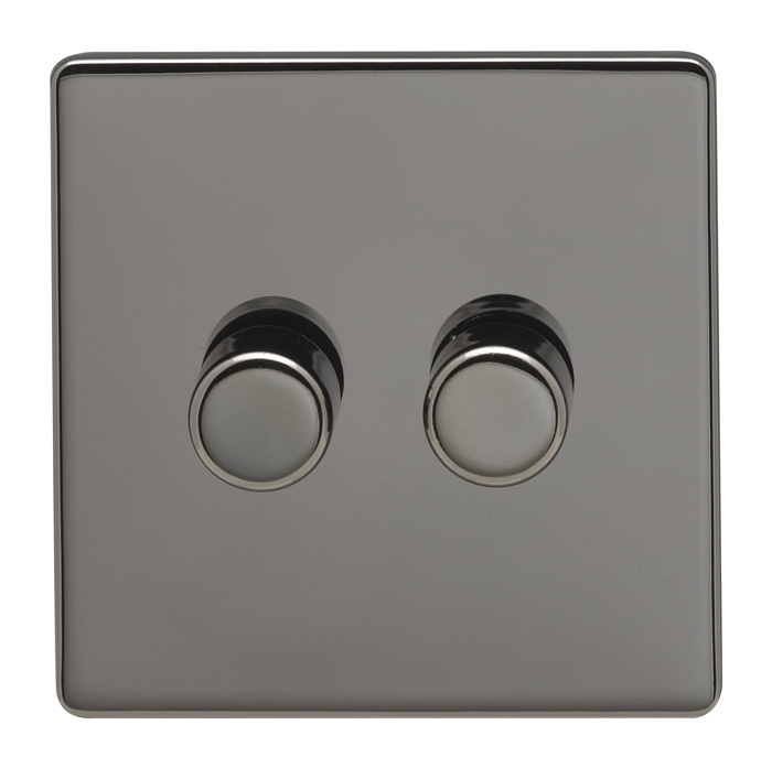 Eurolite Ecbn2D400 2 Gang 400W Push On Off 2Way Dimmer Switch Concealed Black Nickel Plate Matching Knobs Black Trim