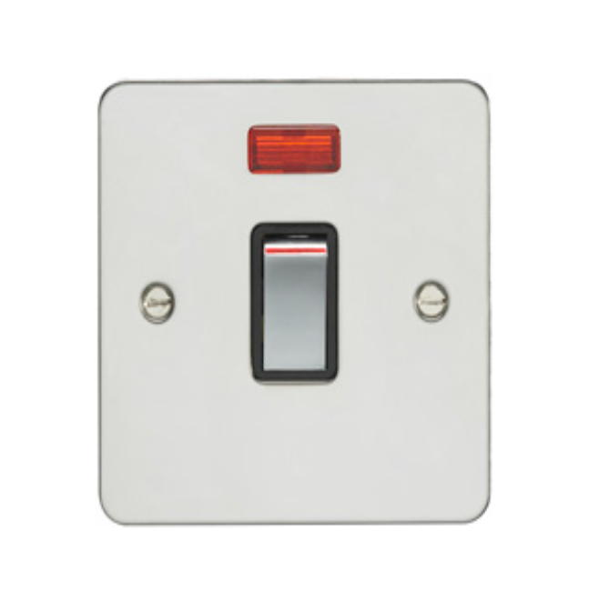 Eurolite Efsss20Adpswnssb 1 Gang 20Amp Dp Switch With Neon Enhance Flat Satin Stainless Steel Plate Matching Rocker Black Trim