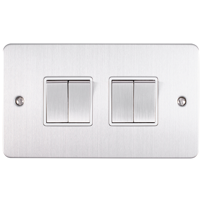 Eurolite Efsss4Swssw 4 Gang 10Amp 2Way Switch Enhance Flat Satin Stainless Steel Plate Matching Rockers White Trim