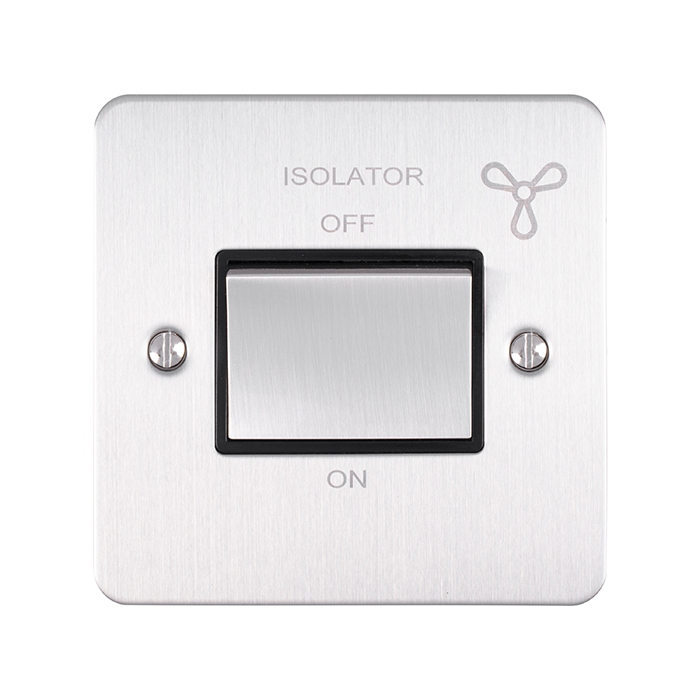 Eurolite Efsssfswssb 10Amp Fan Isolator Switch Enhance Flat Satin Stainless Steel Plate Matching Rocker Black Trim