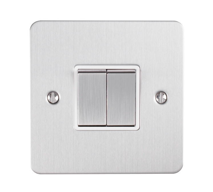 Eurolite Pss2Sw 2 Gang 10Amp 2Way Switch Round Edge Polished Stainless Steel Plate Matching Rockers