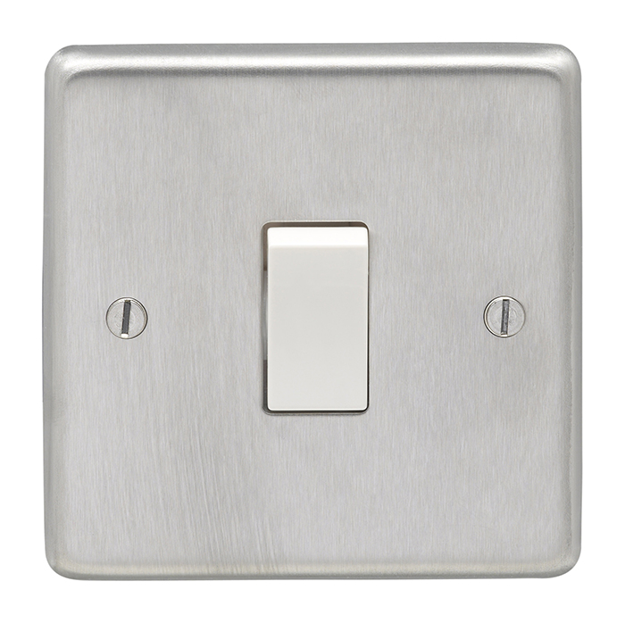 Eurolite Sss1Sww 1 Gang 10Amp 2Way Switch Round Edge Satin Stainless Steel Plate White Rocker