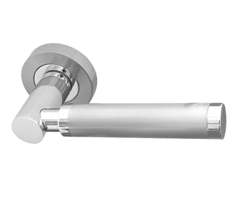 Frelan Hardware Avantime Door Handles On Round Rose, Dual Finish Polished Chrome & Satin Chrome (Sold In Pairs)