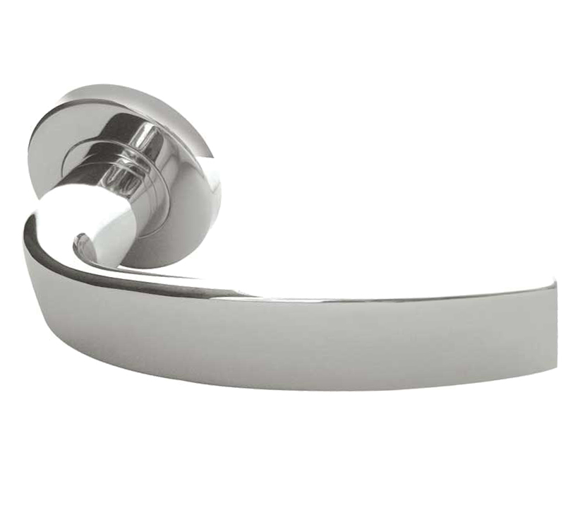 Frelan Hardware Nebula Door Handles On Round Rose, Polished Stainless Steel (Sold In Pairs)