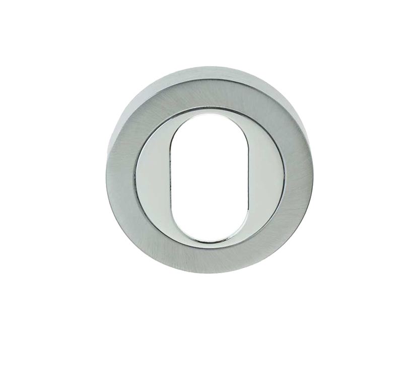 Frelan Hardware Oval Profile Escutcheon, Dual Finish Polished Chrome & Satin Chrome