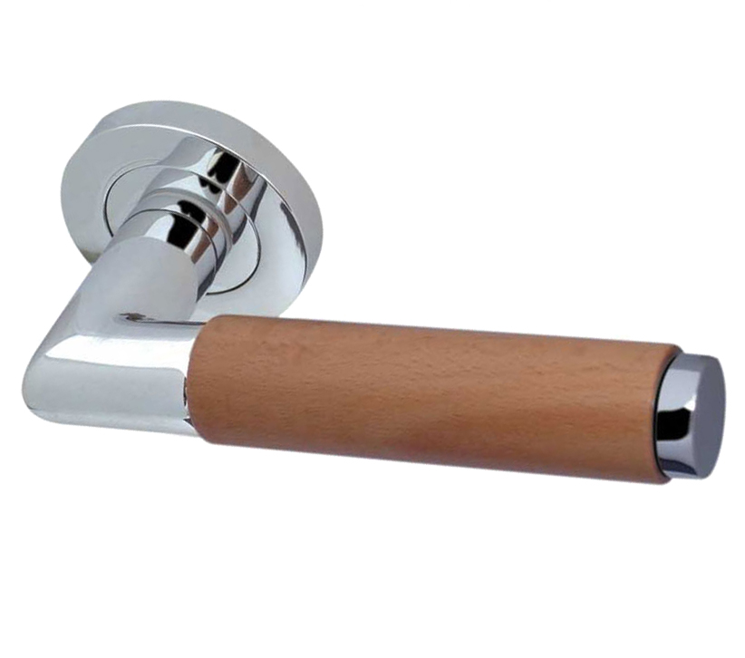Frelan Hardware Reguitti Havanna Light Wood Door Handles On Round Rose, Polished Chrome (Sold In Pairs)