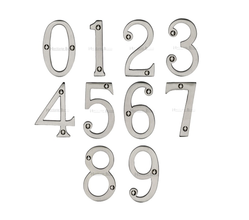 Heritage Brass 0-9 Screw Fixing Numerals (51Mm – 2″), Satin Nickel