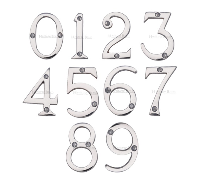 Heritage Brass 0-9 Screw Fixing Numerals (51Mm – 2″), Polished Chrome