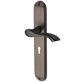 - Part of the Heritage Brass range of door handles on backplate, from M. Marcus Limited who became established in 1940 at Ironmongers Row, London