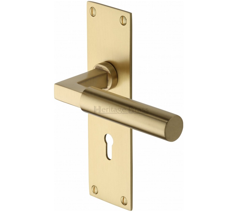 Heritage Brass Bauhaus Low Profile Door Handles On Backplate, Satin Brass (Sold In Pairs)