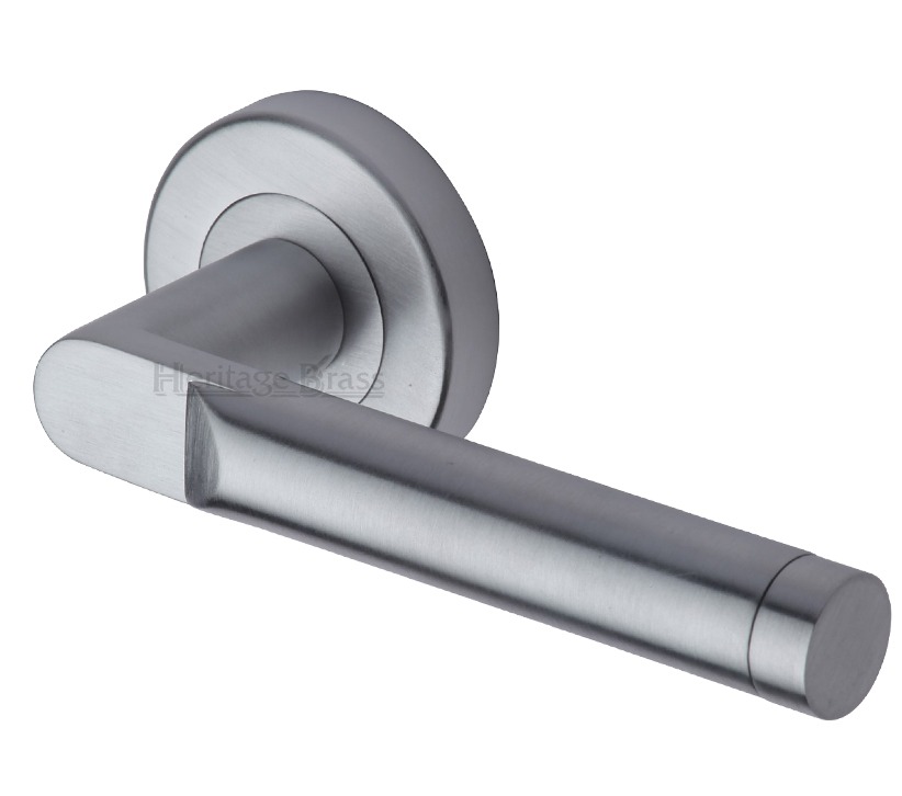 Heritage Brass Algarve Satin Chrome Door Handles On Round Rose (Sold In Pairs)