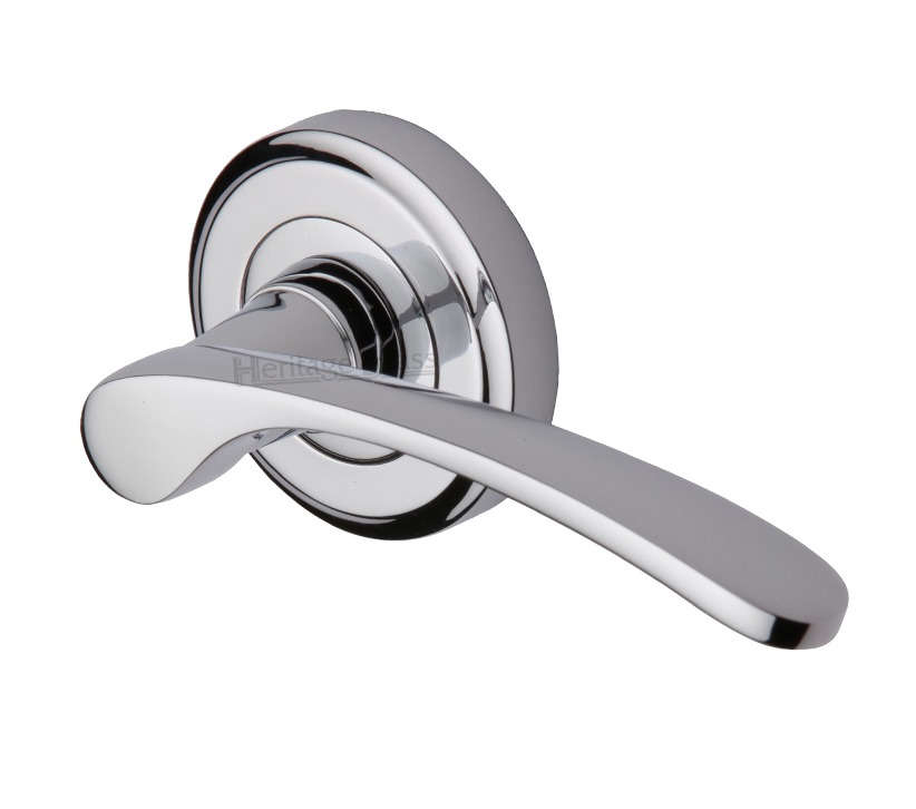 Heritage Brass Bellagio Polished Chrome Door Handles On Round Rose (Sold In Pairs)