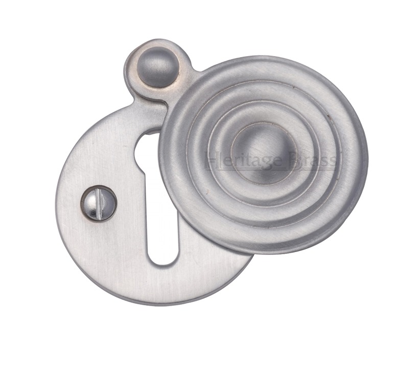 Heritage Brass Standard Round Reeded Covered Key Escutcheon, Satin Chrome