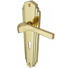 Heritage Brass Waldorf Art Deco Style Door Handles, Polished Brass (Sold In Pairs)