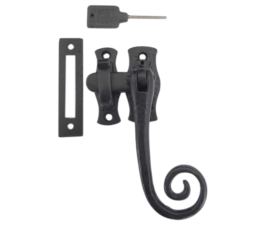 A traditionally simple black antique casement fastener with a traditional monkeytail design, suited to a more period property
