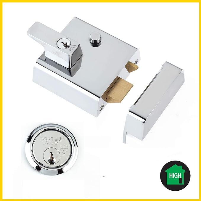 - Traditional high security Yale nightlatch with convenient lever handle to operate lock inside the property