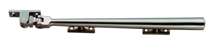 A smart and sturdy solid round-bar window casement stay for timber or aluminium windows. The bar is narrow at the knuckle joint increasing in diameter towards the end resulting in a chunky solid feel. Available in three sizes. The round bar window stay is principally used with the matching round bar window fastener to achieve a consistent style. It has a sleek, minimalist design, making it ideal for discreet fixings in contemporary homes and modern office blocks. Comes with a 10 year mechanical guarantee. Suitable for domestic use.
