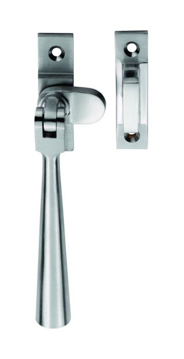 A smart and sturdy solid round-bar window casement fastener for timber or aluminium windows. The bar is narrow at the knuckle joint increasing in diameter towards the end resulting in a chunky solid feel. The round bar window fastener is principally used with the matching round bar window casement stay to achieve a consistent style. It has a sleek, minimalist design, making it ideal for discreet fixings in contemporary homes and modern office blocks. Comes with a 10 year mechanical guarantee. Not suitable for weather stripped windows.