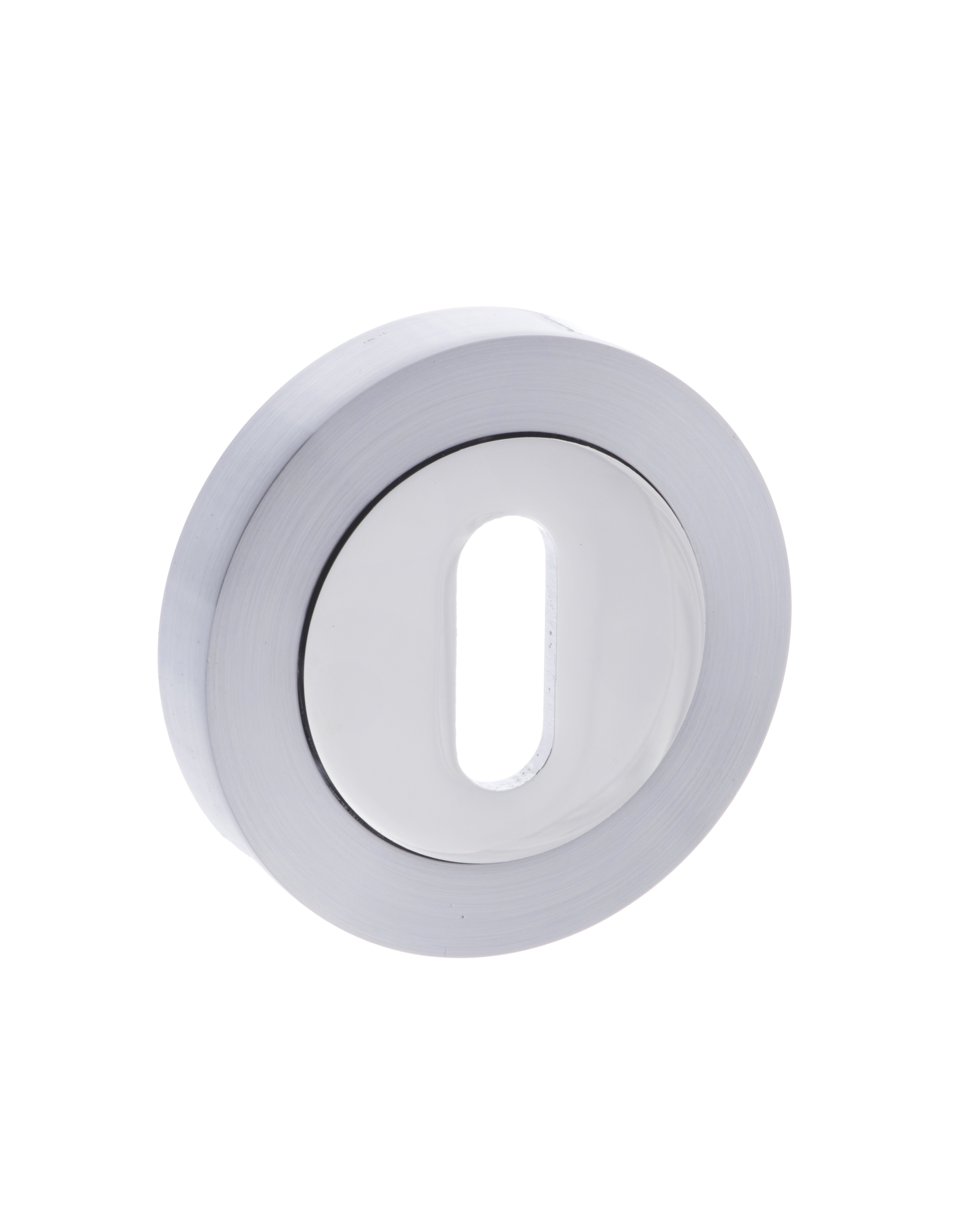 STATUS Key Escutcheon on Round Rose – Satin Chrome/Polished Chrome