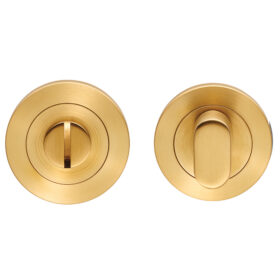 A modern style turn and release with or without indicator to match the SWL Levers. A large flat oval shaped turn with a coin release on the other side in case of emergency access and a coloured segment to signal if engaged or vacant. Part of the range in grade 304 Stainless Steel. Comes with a 10 year mechanical guarantee and is Fire door rated. Suitable for domestic and commercial use. Available in SSS, BSS and BSS/SSS Finish, SWT1016SSS is Grade 316, all other finishes are Grade 304