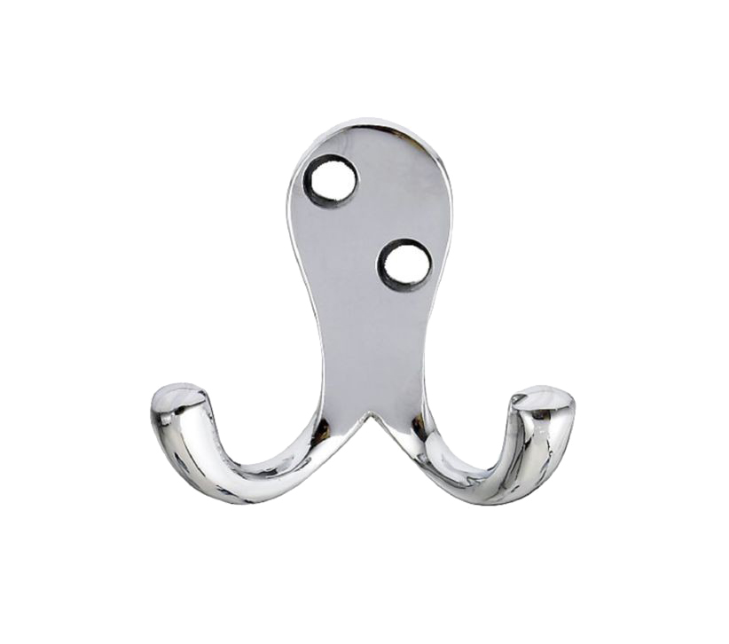 One piece double robe hook which extends below the oval fixing plate. The 2 screw holes ensure a secure fixing. Ideal for bathrooms, cloakrooms and bedrooms, a practical solution when fitted to the back of the door