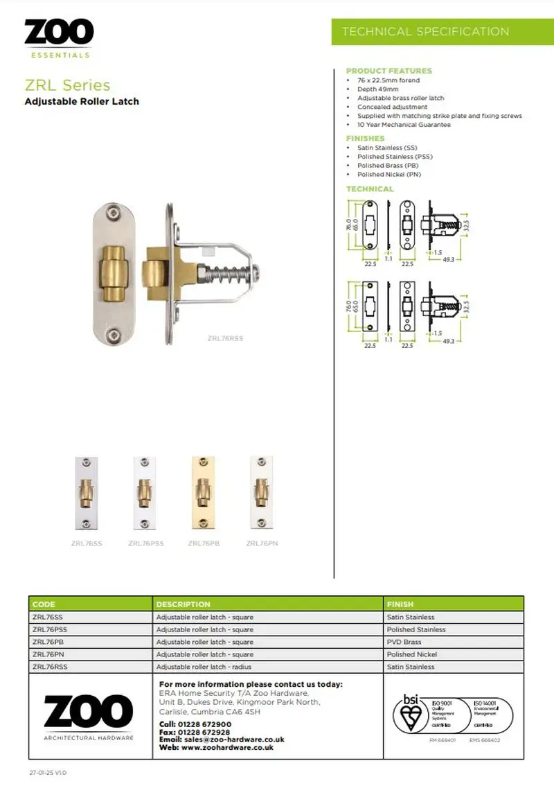 - Architectural heavy quality adjustable Rollerbolt Catch. An alternative to the usual latch mechanism, this rollerbolt Ball style catch allows a door to simply be pulled open instead of having a handle which must turn a latch