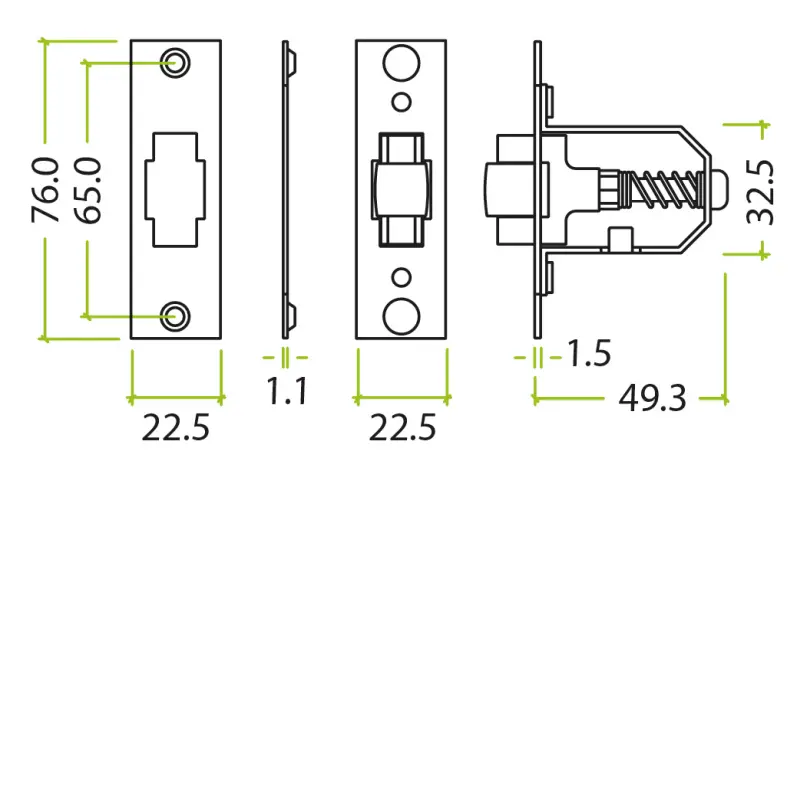 - Dimensions: Depth – 46mm, Forend – 76 x 22mm