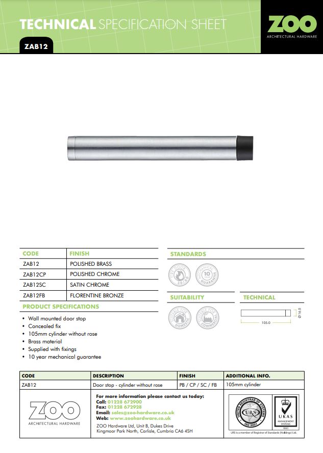 Be the first to review “Zoo Hardware Cylinder Door Stop Without Rose (105Mm), Polished Brass” Cancel reply
