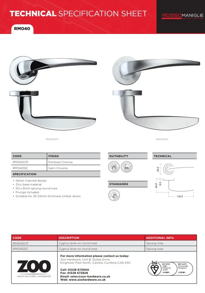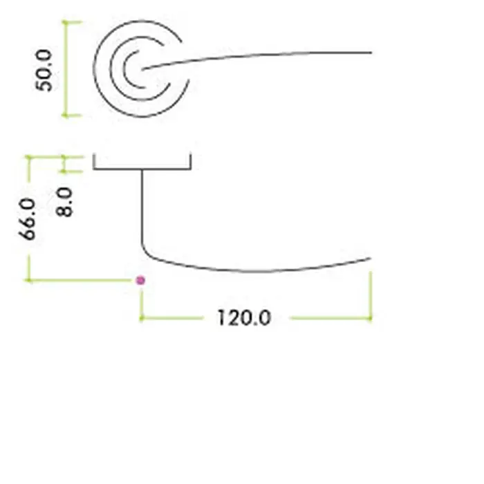 - Dimensions: 50mm x 8mm Rose, 120mm Lever Length, 66mm Projection