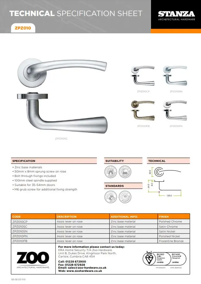 - The Assisi Door Handle on Rose from Zoo Hardware has a slim and smooth wave shaped lever on a round rose