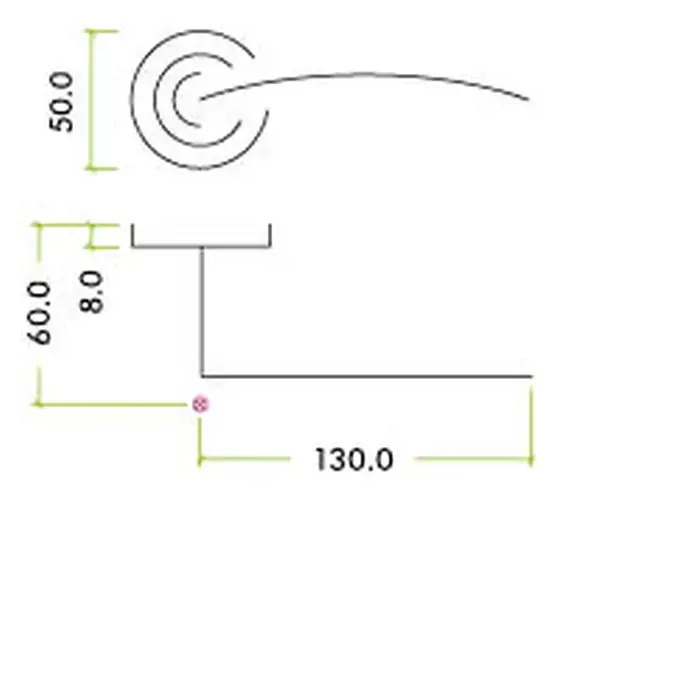 - Dimensions: 50mm x 8mm Rose, 120mm Lever Length, 65mm Projection