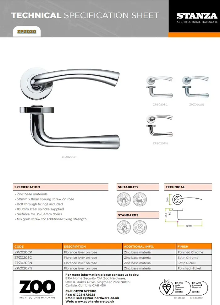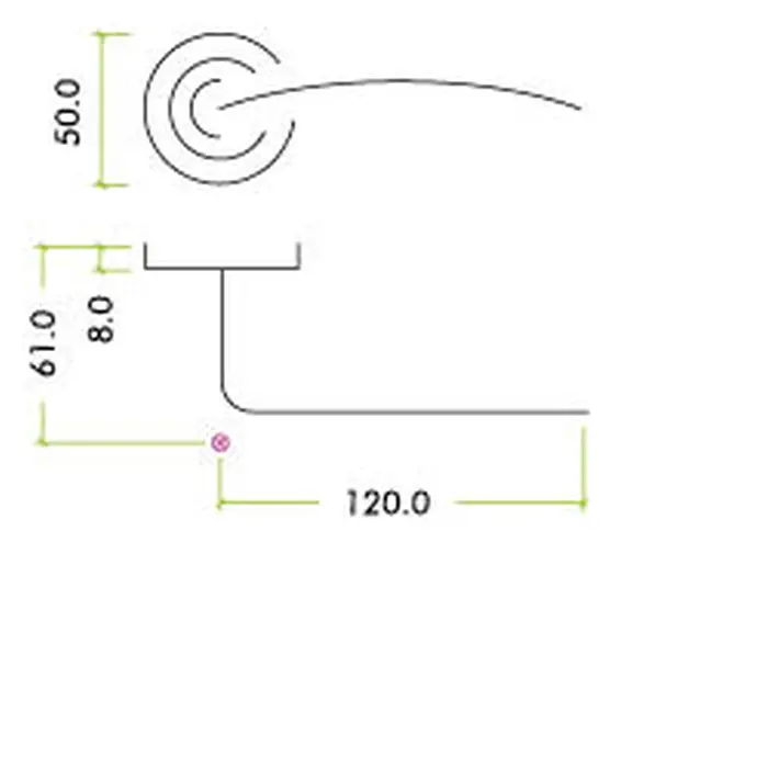 - Dimensions: 50mm x 8mm Rose, 120mm Lever Length, 61mm Projection