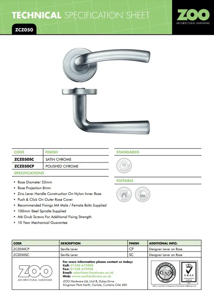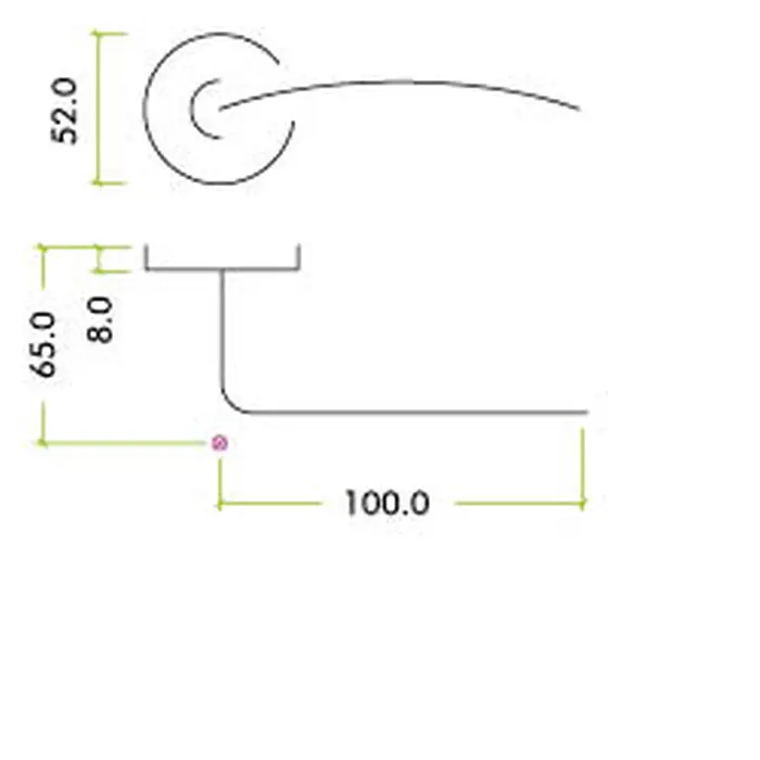 - Dimensions: 52mm x 8mm Rose, 100mm Lever Length, 65mm Projection