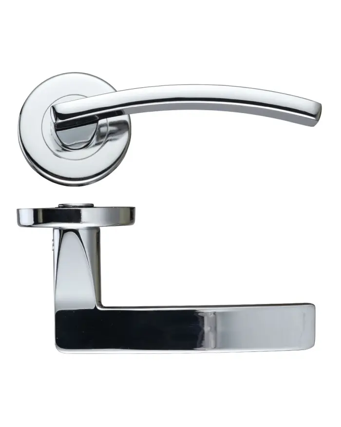 - The Toledo door handle on rose has a sleek, slightly curved shape, ideal for a clean modern look on your doors