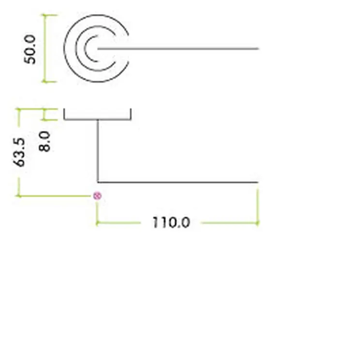 - Dimensions: 50mm x 8mm Rose, 110mm Lever Length, 63.5mm Projection