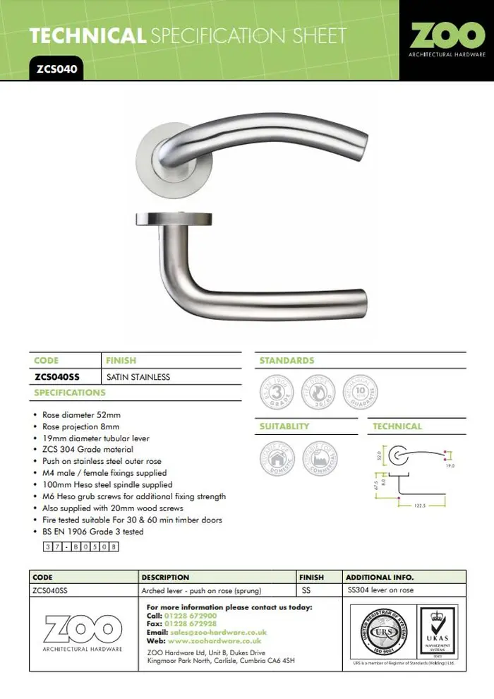 Be the first to review “Zoo Hardware Zcs Architectural Arched Lever On Round Rose, Satin Stainless Steel (Sold In Pairs)” Cancel reply